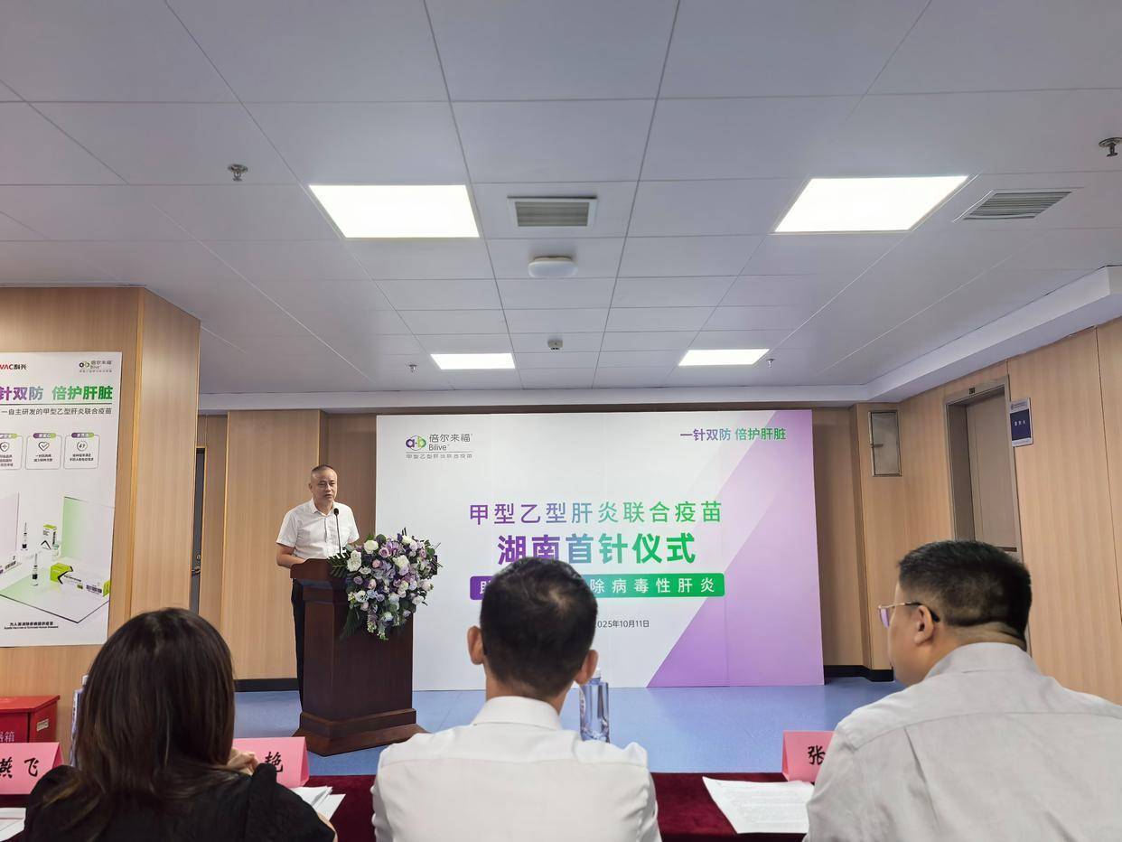 甲型乙型肝炎联合疫苗湖南首针仪式活动现场。据湖南省疾病预防控制中心副主任彭晔炜介绍,近年来,在政府主导、社会协同和科技赋能下,湖南省肝炎防治工作取得显著成效,但由于目前病毒性肝炎发病率高、危害大、部分地区也因为/span>湖南省疾病预防控制中心预防医学门诊部主治医师陈万慧表示,以往甲肝、乙肝疫苗需要分开接种,甲肝疫苗接种1至2针次,乙肝疫苗接种3针。现在有了甲乙肝联合疫苗,既节省了时间,减少接种次数,费用也更低。“疫苗首先上市是在湖南的长沙地区,其它市州也将陆续铺开接种。”据悉,该疫苗适用于1岁以上人群;曾接种过甲肝和乙肝疫苗的人群,可以通过一针甲型乙型肝炎疫苗进行加强,实现免疫唤醒。各位市民朋友可以前往就近的预防接种门诊咨询接种,成人甲乙肝疫苗单剂价格为238元,加上冷链运输和接种服务费共计267.5元,儿童甲乙肝疫苗单剂为218元,加上冷链运输和接种服务费共计247.5元。具体可咨询就近预防接种门诊。举报/反馈